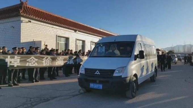“平安阿左旗”在发布消息中介绍:徐海斌同志殉职后,阿拉善盟委政法委、盟行署,阿拉善左旗旗委、政府、人大、政协,盟旗公安机关领导班子、其他旗区公安机关代表、旗局各所队负责人和民警辅警代表,纷纷前去吊唁。3月2日,徐海斌同志遗体告别仪式在红山公墓举行,自治区公安厅派员、盟公安局、阿左旗各级领导、同事、亲朋好友前去送别。