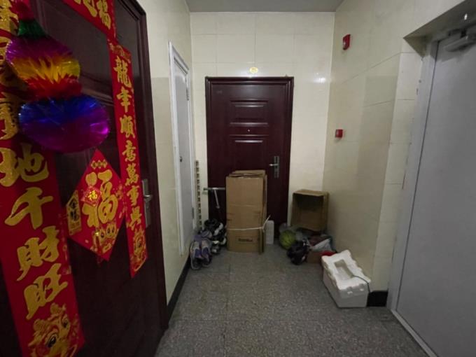 李传良被查封的房产门口,被邻居堆满杂物