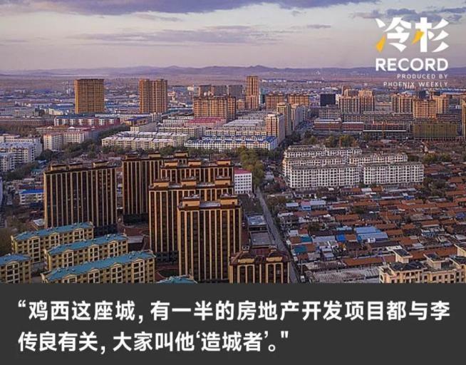 “鸡西这座城,有一半的房地产开发项目都与李传良有关,大家叫他‘造城者’。”当地知情人士向《凤凰周刊》透露,李传良很早就开始为自己编制商业版图,2017年正式离开公职后,他在鸡西搞起房地产开发,生意做得很大。“李半城”的绰号,就是那个时间得来的。有关绰号,更早之前,别人还称呼他为“大脑袋”,父母则唤其“大柱子”。