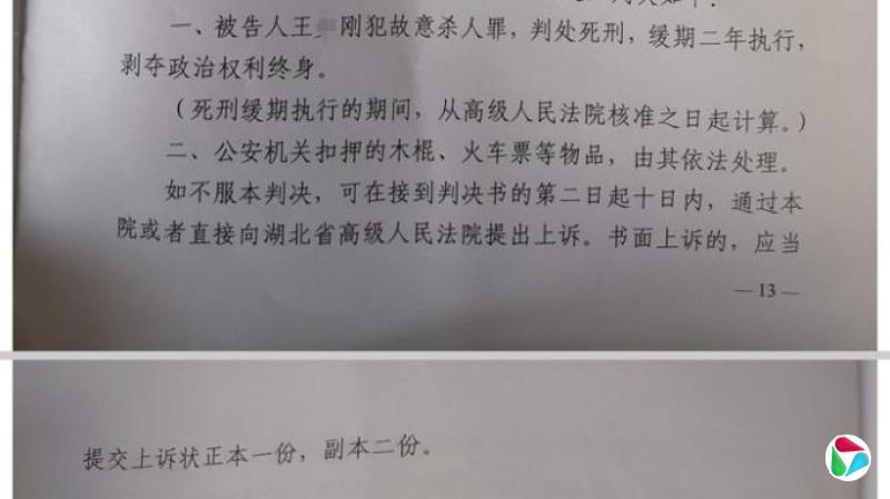 2023年8月7日,王某刚被湖北省武汉市中级人民法院判处死刑,缓期两年执行,剥夺政治权利终身。敖女士告诉新黄河记者,她并未就此刑案提起上诉,“因为王某刚被鉴定为限制(部分)刑事责任能力,所以只有接受判决。”