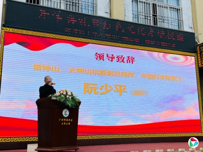 “阮少平”在小学开学典礼上发言。