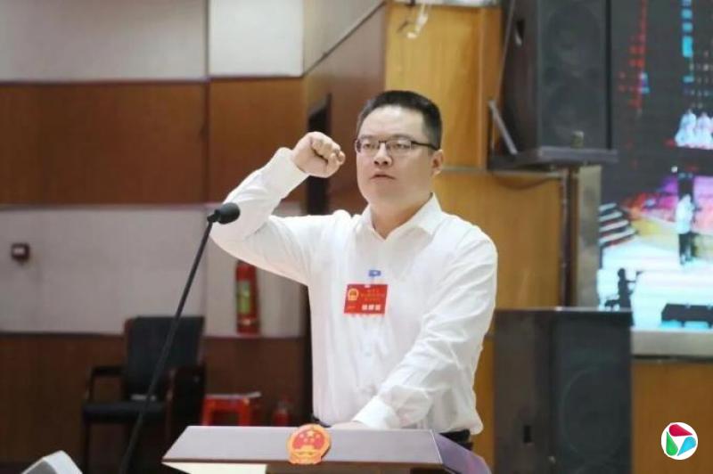 新当选的峡江县人民政府县长唐小超向宪法宣誓。