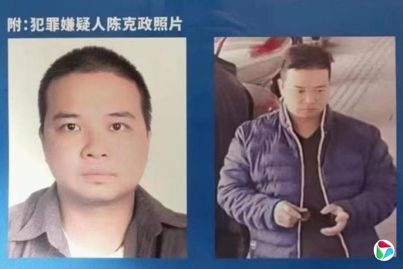 2023年1月30日,梧州公安机关发布悬赏通告,称市内发生一起重大刑事案件,陈克政有重大作案嫌疑,悬赏10万元征集线索。在警方通缉的照片中,陈克政圆形脸,身形魁梧。