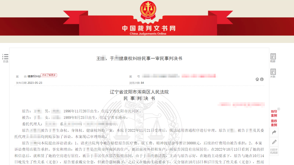 2022年,26岁的小王(化名)与年长7岁的女房东于某在没有采取安全措施的情况下发生了三次性关系。之后,小王被检查出人乳头瘤病毒(HPV)阳性。