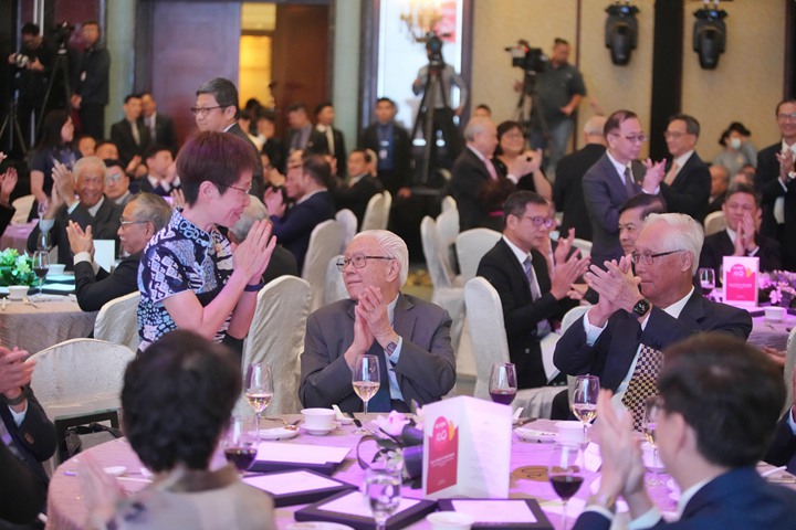 早报百年报庆晚宴宴开70席,除了国内外贵宾,也邀请服务超过25年,如今还在编采、行政等工作岗位不断贡献的资深同事参与,以感谢他们多年的付出。李慧玲也邀请在现场所有早报人起立接受致敬,现场掌声不断。