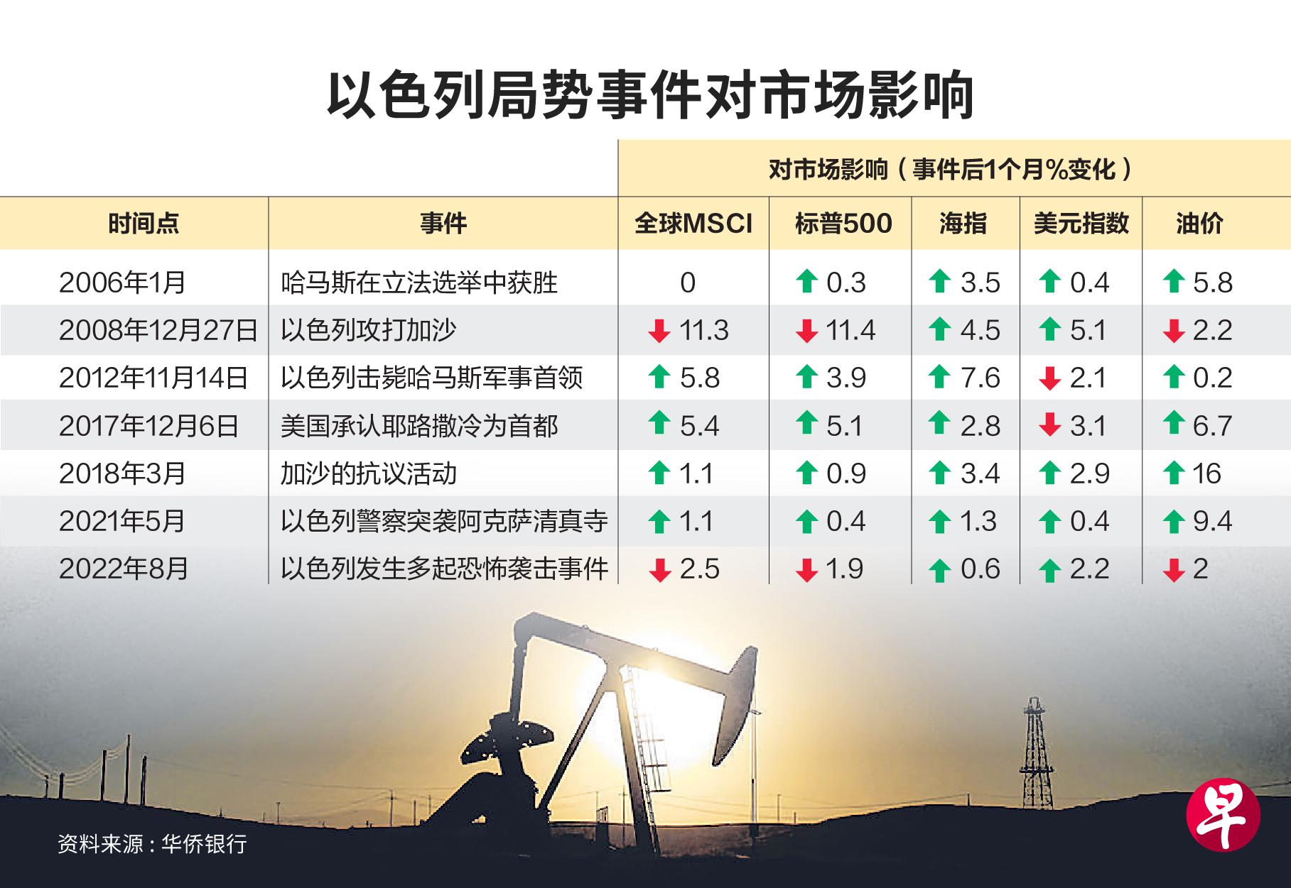 历史数据显示,在过往的多次以色列和巴勒斯坦冲突事件之后,油价多数时候上涨,全球股市表现参差不齐,本地股市基本都出现涨幅。