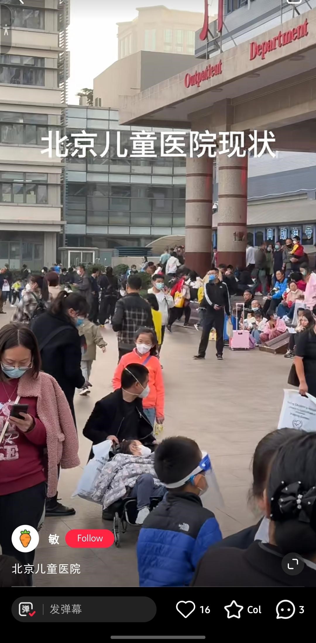 另一则视频也显示,到北京儿童医院看诊的民众过多,排队排到大门口,还有民众自备露营椅子在外等待。
