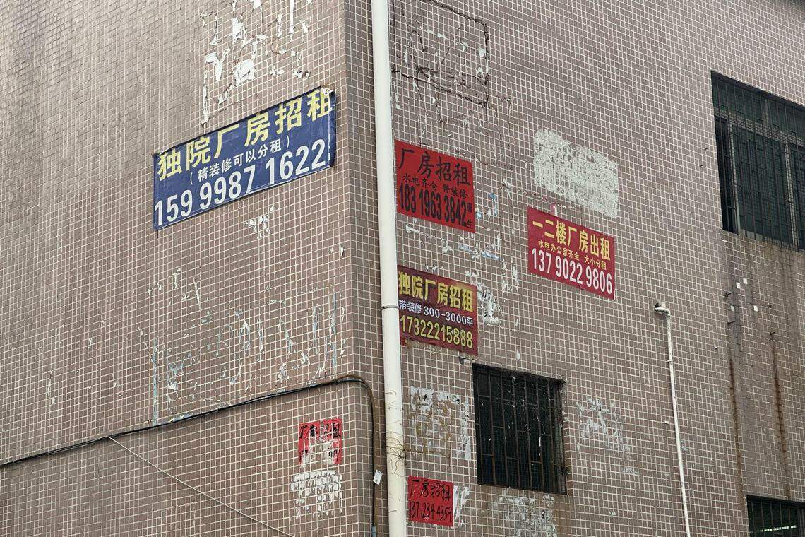 在广东省东莞市的街镇漫步,随处可见厂房外墙上招租的告示,以及空置的店铺。即便是工作日,小镇路上人车稀稀落落,除了几个开门做生意的小店铺老板坐在一起的闲聊声,街边显得格外寂静。
