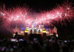 2023年5月1日,游客在沈阳方特欢乐世界观赏烟花表演。 新华社记者 龙雷 摄