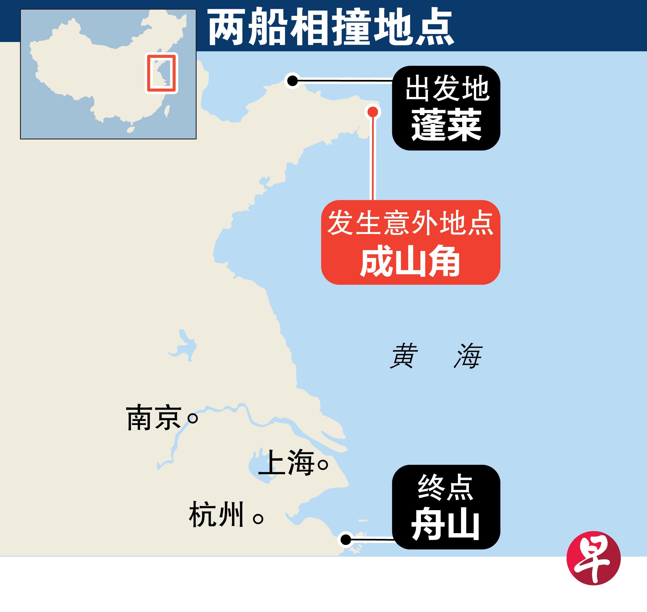 这起事件发生在12月26日零时08分,地点是中国山东省成山角一带的水域。
