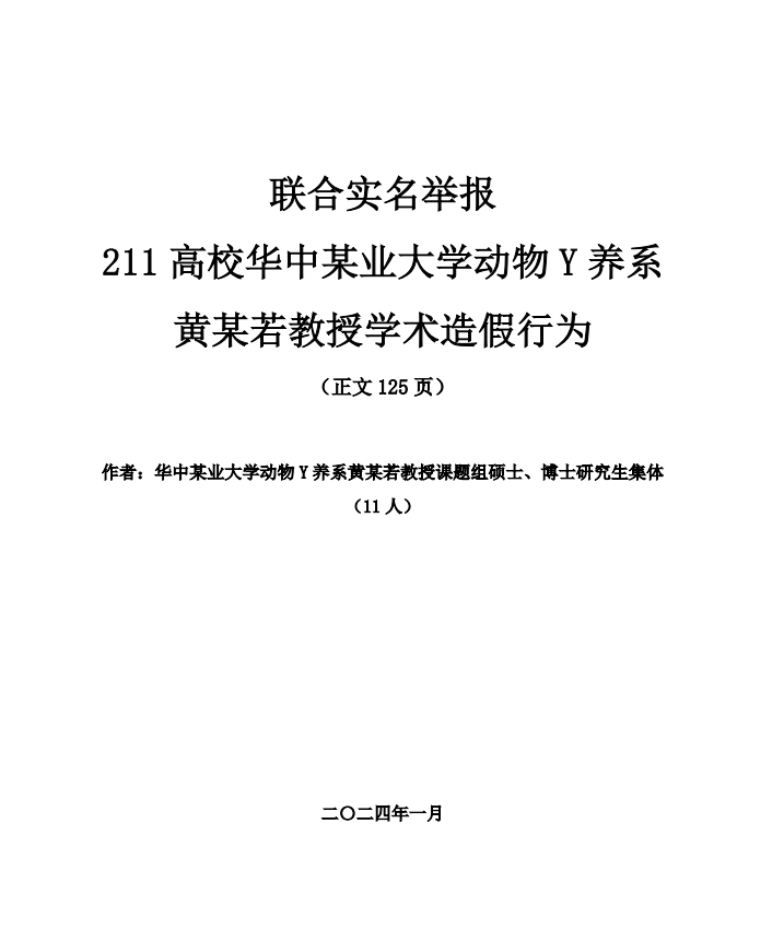 发布举报信的11人来自华中农业大学动物科学技术学院和动物医学院,其中博士生两人、硕士生九人。他们举报的是该校动物科学技术学院教授、博士生导师黄飞若。