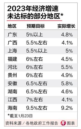 中国北京、上海和广东三地今年经济增长目标均设在5%,预计将与3月出炉的全国官方目标相差不远。不过,目前已公布去年地区生产总值(GDP)的21个省市中,近半数经济增速未达标,显示疫后经济反弹力度不及预期,也预示今年维持同等增速并非易事。