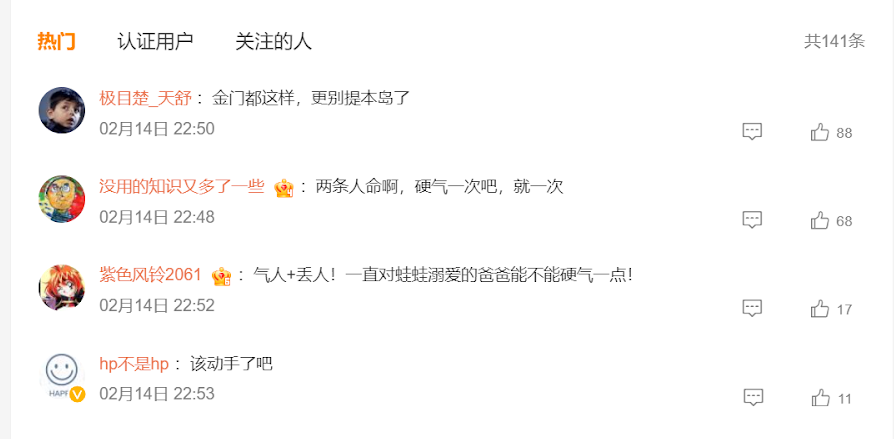 翻覆事件发生后,不少大陆网民都表示不满,认为台湾海巡署要为事件负起全责。“持续关注后续进展,绝不能不了了之,既然同属一个国家,这就是杀人罪”“不能总是这样容忍对岸这么做!”更有网民留言说:“先收回金门附近海域的执法权”“该动手了吧”“别忘了,金门现在能喝上水,是大陆全力帮忙的……现在却被反咬一口,大陆赶紧切断水供吧!”