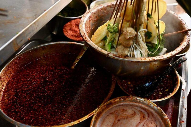 除了甘谷辣椒,秦安花椒、定西土豆和宽粉、高原蔬菜、戈壁海鲜也是一碗天水麻辣烫中常见的配料。(中新社)