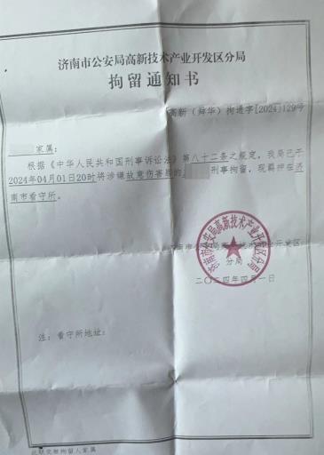 此后,当地警方赶往现场进行处置,双方签订了和解协议。4月1日,小超父亲收到济南市公安局高新技术开发区分局的拘留通知书,小超因涉嫌故意伤害罪被刑事拘留。