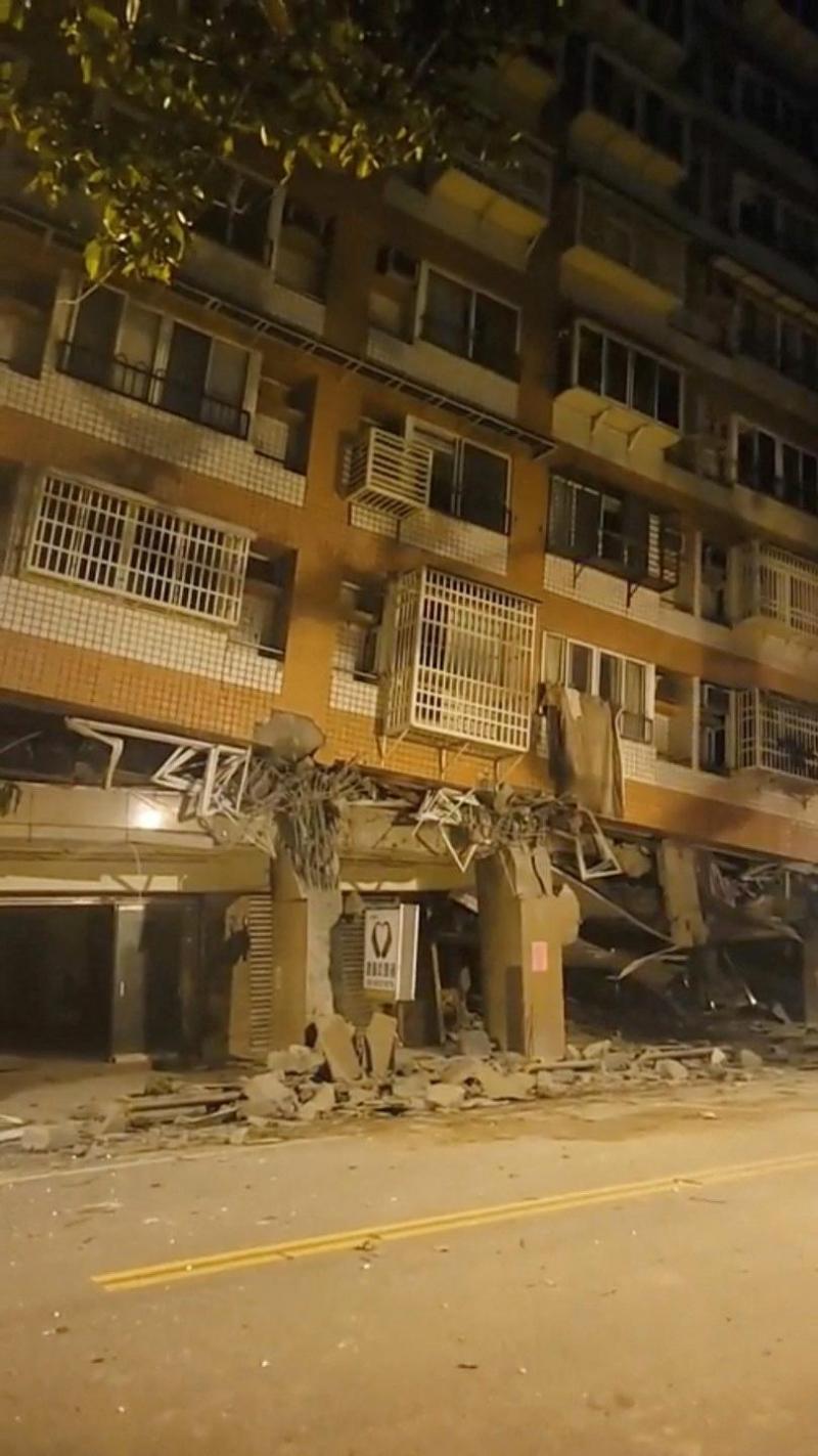 位于花莲市明礼路的统帅大楼原已被县府列为拆除建筑物的名单,然而又因此次地震而倾斜。