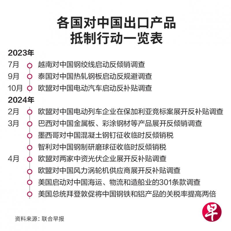 为抵消楼市低迷对经济的拖累,中国政府将投资转向先进制造业,助推新能源产品的生产和出口。楼市下行也加剧钢铁和建材滞销,推动更多钢铁厂商转向国外市场。