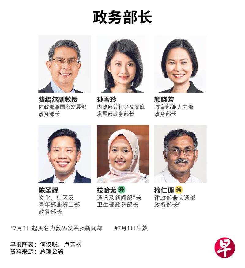 两名后座议员则成为政务官,他们是武吉巴督区议员穆仁理和裕廊集选区议员黄伟中。