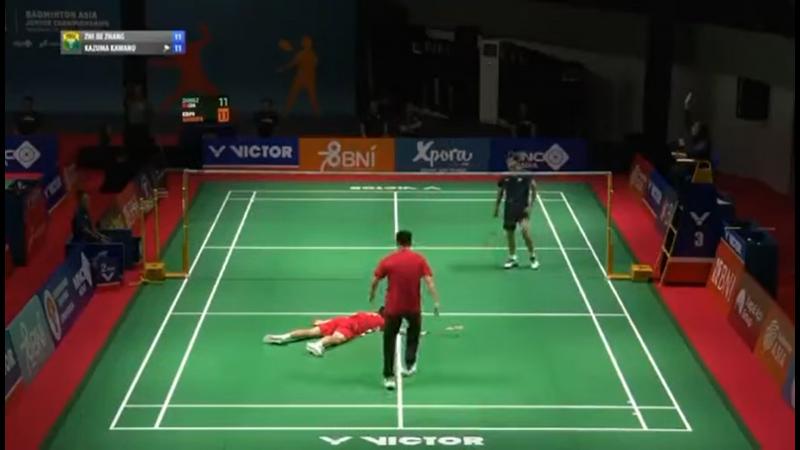 6月30日在印度尼西亚日惹举行的亚洲青年羽毛球锦标赛混合团体小组赛上,张志杰在第三盘男单迎战日本选手川野寿真。