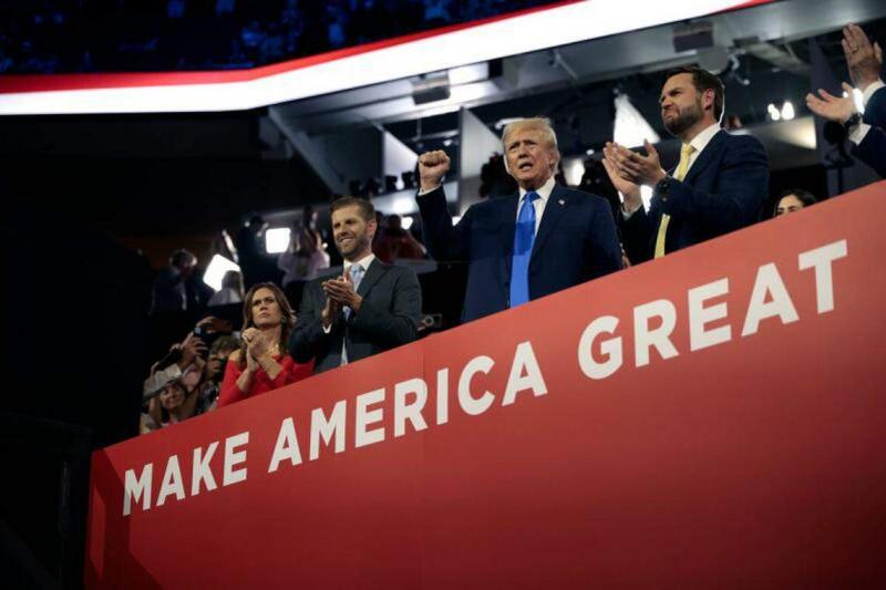 美国前总统特朗普星期一(7月15日)获提名为共和党总统候选人后,宣布共和党俄亥俄州参议员万斯(J.D. Vance)为竞选搭档、副总统候选人。