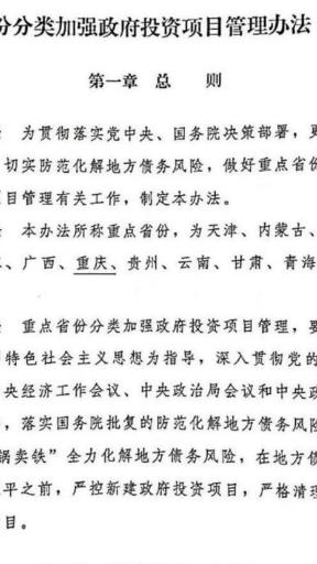 去年年底,中国国务院办公厅印发《重点省份分类加强政府投资项目管理办法(试行)》,其中点名天津、内蒙古、辽宁、吉林、重庆、贵州等12个“化债大省”要全力化解地方债务风险。