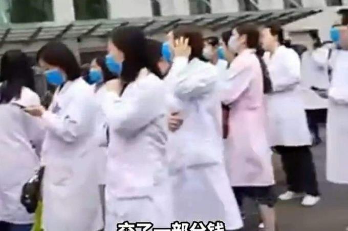 随后,山东烟台肺科医院也被爆拖欠六个月工资。四川遂宁也爆出医护人员坐窗台边疑似以跳楼方式讨薪维权的视频。