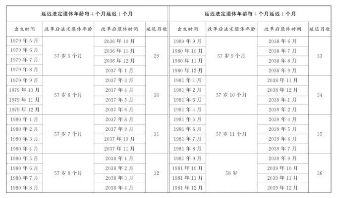 3.原法定退休年龄五十周岁的女职工延迟法定退休年龄对照表