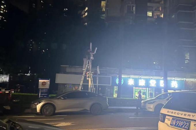 有深圳市民看到,星期四晚上,有关官方在深圳日本人学校外,靠近案发现场的工业八路的地方安装了监控设备。(《联合早报》受访者提供)