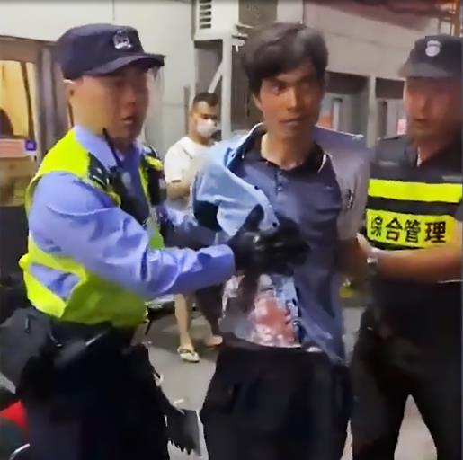 网传视频显示,林姓嫌犯进入沃尔玛超市所在商场时,左右手均持有一把刀;被捕时他并没有显得慌张,白色外套上有大片血迹。