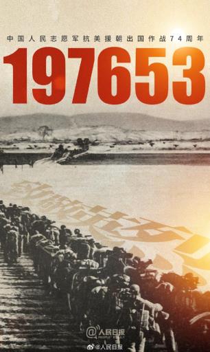 中国《人民日报》星期五(10月25日)在微博发贴文,纪念中国人民志愿军抗美援朝74周年。(互联网)