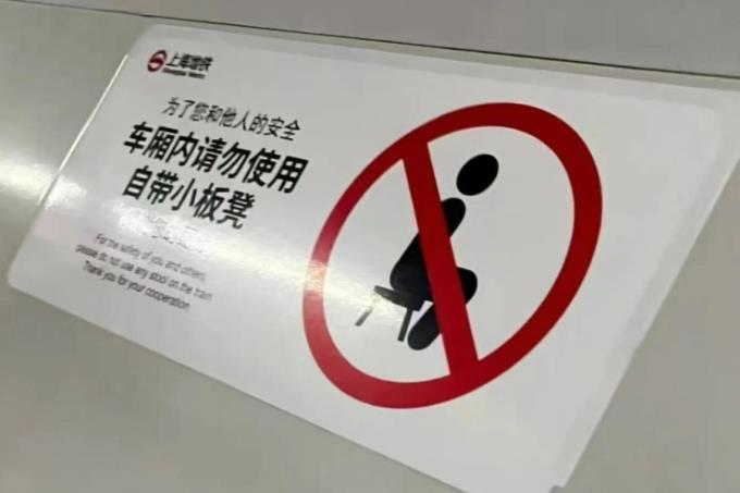 上海地铁明确:不提倡在地铁车厢内使用小板凳,希望乘客文明乘地铁,勿做“板凳族”。