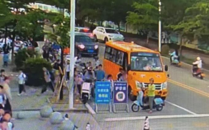 11月7日7时许,在儋州市那大第九小学,四辆电动三轮车陆续停靠在学校后门口。这些电动三轮车经过改装,加了三面遮挡的车棚,几根横向排列的铁栏杆充当了车后门,车里挤满了穿着校服的学生。其中一辆电动三轮车驾驶位旁也挤了两名学生。