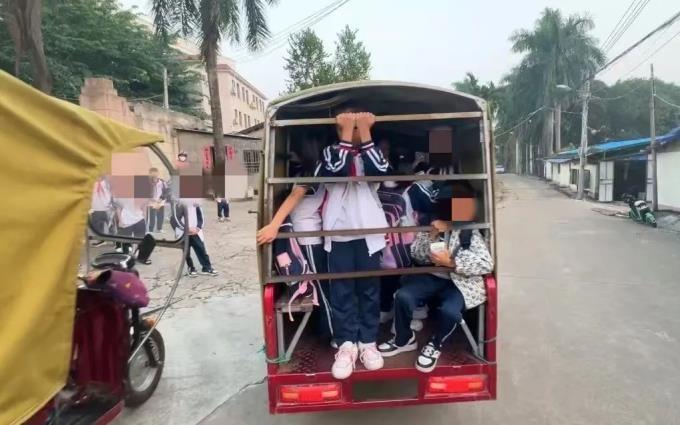 车辆停下后,考核巡查组看到,每辆电动三轮车上陆续下来了10多人。一名学生告诉考核巡查组,他们都是在学校周边托管机构寄宿的学生,“每天早上坐车去学校,从一年级到六年级都是这样。”有学生表示,其已经乘坐电动三轮车上下学4年了,“人挤的时候,就抓着车后面的铁栏杆,没遇到(三轮车拉人)被查的。”