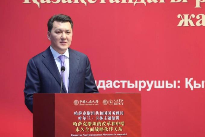 事缘哈萨克斯坦国务顾问叶尔兰·卡林上月到访人民大学,以“哈萨克斯坦的改革和中哈永久全面战略伙伴关系”为主题发表演讲。