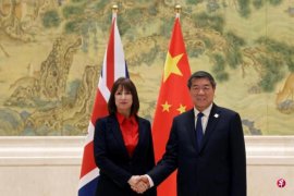 综合法新社和路透社报道,里夫斯星期六(1月11日)率团在北京钓鱼台国宾馆与何立峰会面,举行停摆近六年的第11次中英经济财金对话。