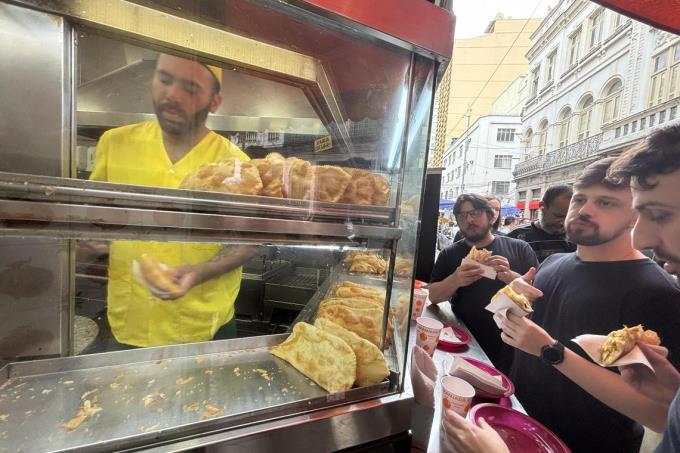 看起来有点像新加坡的“咖喱卜”、咬下去口感类似炸饺子、咀嚼时则能尝到饱满肉碎……在巴西,一种名为“角仔”(pastel)的街头美食称得上“国民小吃”,许多巴西人上班途中、午休时、下班后都会在小吃店停下脚步,买一份充饥解馋。