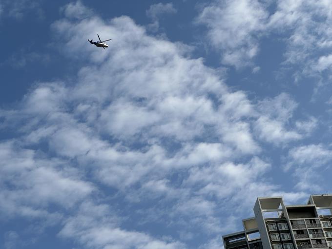 法院上空有直升机持续盘旋,以加强现场监控与警戒。(林煇智摄)