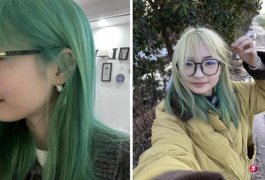 在试过蓝色、栗棕色、脏橘色后,“00后”中国女孩侯雅萌第四次染发,染出了一头亮丽的绿色长发。