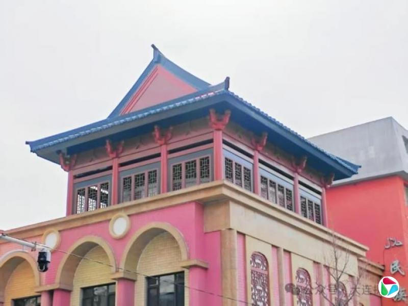 大连清真寺位于市内北京街,始建于1922年,文革后重修,新寺工程当年动工,1990年落成。据介绍,清真寺为阿拉伯建筑风格,门厅顶部中间是绿色大圆顶,顶上端装饰有象征伊斯兰教的月牙,两侧另有两个小圆顶陪衬。