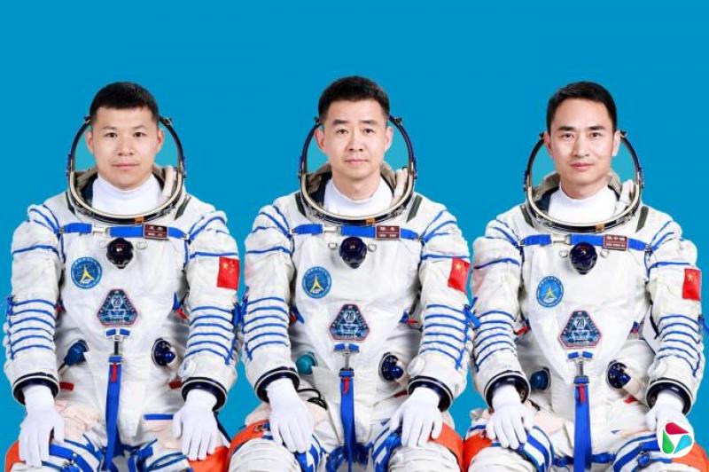 图为神舟二十号航天员乘组,从左到右分别为王杰、陈冬、陈中瑞。(新华社)