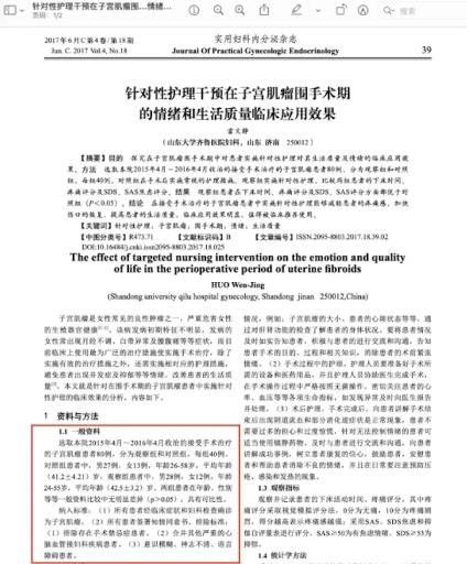 就在舆论关注《针对性护理干预在子宫肌瘤围手术期的情绪和生活质量临床应用效果》这篇医学论文之际,澎湃新闻进一步搜索看到,在知网上还有两篇涉妇科论文中出现男性病例,分别是《腹腔镜宫颈癌根治术联合卵巢移位、阴道延长对患者性生活质量及内分泌水平的影响》(简称《影响》),以及《护理干预在羊水栓塞高危产妇预防中的意义分析》(简称《分析》)。