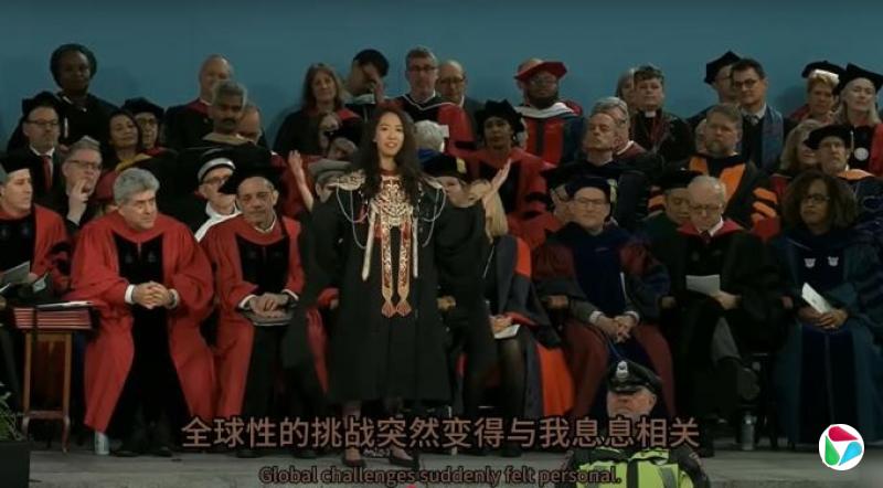 作为哈佛近400年校史上首位登上毕业讲台的中国女性,蒋雨融的演讲自然格外吸引舆论目光。