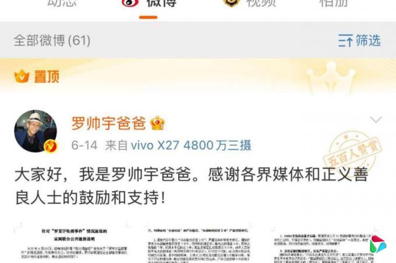 罗帅宇妈妈上星期五(6月13日)发视频称:“我和罗爸爸一直坚信,我儿子的高坠和举报刘翔峰有直接的关系。”