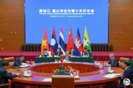 据中国外交部官网消息,澜沧江—湄公河合作第10次外长会星期五(8月15日)在云南安宁举行,会议主题为“金色10年:坚守团结初心,共筑美好家园”。王毅和泰国外长玛里共同主持会议,柬埔寨副首相兼外交部长布拉索昆、老挝外长通沙万、缅甸外长丹穗、越南副总理兼外长裴青山出席。