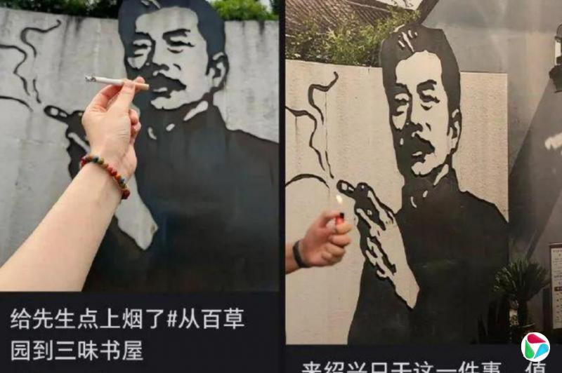 继“同款毛背心”大火后,中国文豪鲁迅的一幅抽烟墙画又成为舆论焦点。