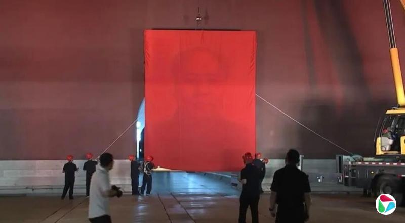 今年的画像更换是从8月19日23时开始,运载着新画像的货车从端门开出,历时两个多小时,旧画像被摘下,新画像吊装在天安门城楼中央。