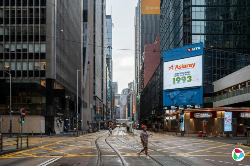 香港星期二下午(9月23日)发出8号风球信号后,平日车水马龙的中环街头空空荡荡。(彭博社)