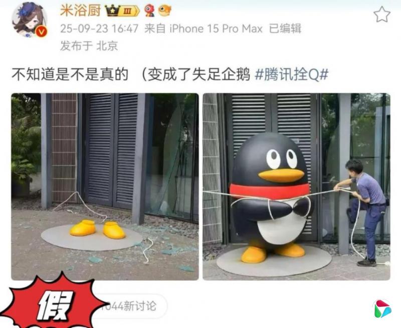 此外,社交平台上出现了大量图片,显示广东的车主为防止车辆被台风吹走,将车辆“五花大绑”。更有图片显示,被“五花大绑”的车辆还是被倒伏的树砸到。还有网民传播的图片显示,深圳腾讯公司的企鹅只剩双脚,上身被风吹走。还有网民发图,显示深交所门前的牛雕塑被用绳拴在一根柱子上。经核实,这些图片都有明显的AI合成痕迹。