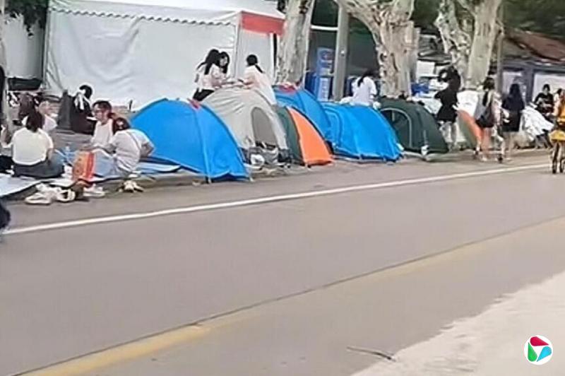 这种心态,在社媒讨论群里里处处可见。在小红书或微博上,“帐篷大军”成为热门话题,许多网民晒出湖北武汉街头和公园里出现的五颜六色帐篷。