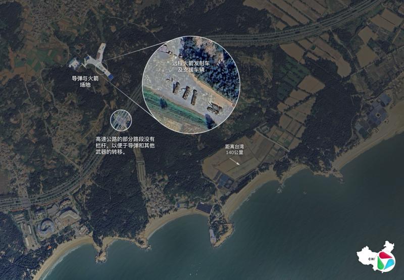 这些发射场中有一个位于大陆离台湾最近的地方。2022年,时任美国众议院议长的南希·佩洛西访问台湾后,作为报复,中国进行了军事演习,追踪中国人民解放军部队动向的台湾独立研究员温约瑟说,当时从那个发射场试射了能够打击台湾的火箭。温约瑟研究了中国中央电视台报道那些演习的录像,以确定演习使用了什么发射场。
